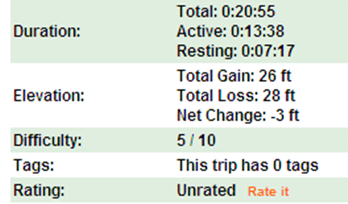 The Garmin did not do a good job capturing my route. The picture above is a grab from Google Earth using the imported KMZ file. I stayed primarily in a middle lane but the GPS interpreted that much differently. Even though the 210 is always a little off I still like it a lot. It’s great to be able to run without swapping the foot pod every time I change shoes. Especially in the case of the Hattori’s that don’t even have a place to attach a foot pod.