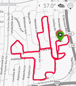 This morning’s run was delayed due to an early morning appointment, but I still managed to get out the door a little before 9:00 AM. The weather was mild (57°) except when the wind hit. I dressed light and stayed comfortable. There are only so many roads to run in my neighborhood and the challenge is to string together a route that somewhat breaks the monotony. It can be as simple as running a street in the opposite direction than I usually run it.