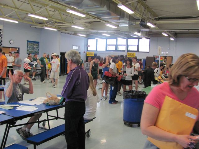 The weather was perfect when we arrived at the Denton Ave. school where the race begins and ends. There was a little miscue with my registration and they couldn’t find my race package. Fortunately, they did have my proper tag and bib number. The crowd seemed smaller than last year, but a quick comparison with last year’s results shows there were slightly more people running today. But the feel of the race was different this year, lacking its usual excitement and energy.