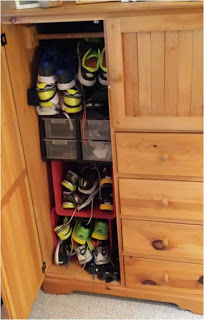 In truth, I tend to wear the same gear, cycling through four or five pairs of shorts, the same number of shirts and about half a dozen pairs of socks. That changes a little when the seasons change and I put wool socks to the back of the drawer until fall. I know I should go through all this stuff and keep only those clothes and shoes that I actually use. I really should donate the undamaged shirts and recycle the old trainers. I’ll make it a project for next weekend unless I can find anything else to do.